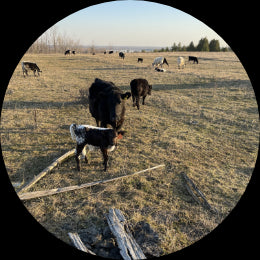 Our cows graze on nutrient-rich pastures with limestone beds and alfalfa, timothy, and orchard grass diet for healthy growth. We manage our hay carefully, wrapping and sealing to ferment the first cut and storing the second cut out of the weather to provide the best feed for our cows.